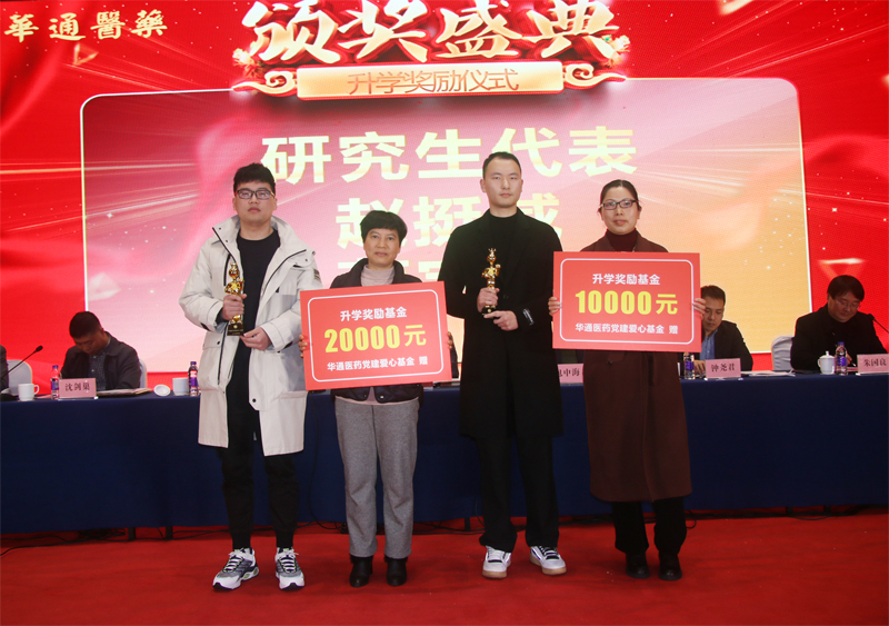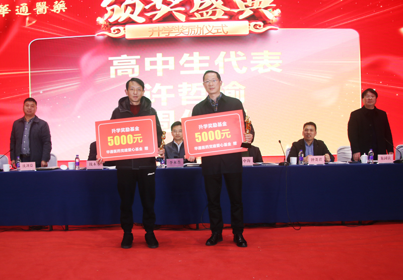 大會還舉行了“華通醫藥黨建愛心基金”職工子女升學獎勵儀式,部分職工子女代表參加領獎。2022年接受九年制義務教育、高中、本科、研究生共計50人,獎勵金額19.9萬元。